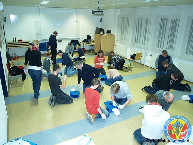 Um bei einem Einsatz, aber auch im Alltag schnelle und richtige Erste Hilfe leisten zu können, wurden die Mitglieder der Feuerwehr in einer Gesamtschulung zu den Themen: