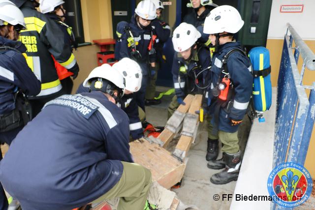 Zu diesem Zweck wurden durch das Jugendbetreuerteam der Feuerwehr Laxenburg und Biedermannsdorf, Schulungen und Einsatzübungen vorbereitet, welche die Mitglieder der FJ unter Beratung und Betreuung von aktiven Mitgliedern zu absolvieren hatten.