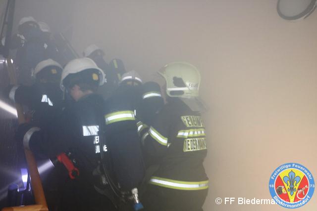 Bei dem ersten gestellten Einsatz handelte es sich um einen Wohnhausbrand bei der zwei Personen vermisst wurden. Die FJ-Mitglieder mussten ihr bereits im Vorfeld bei den Jugendstunden (immer Montags 18-20 Uhr) erlerntes Wissen praktisch umsetzen und so rüsteten sich zwei Atemschutztrupps aus um die vermissten Personen zu retten und den Brand zu löschen.