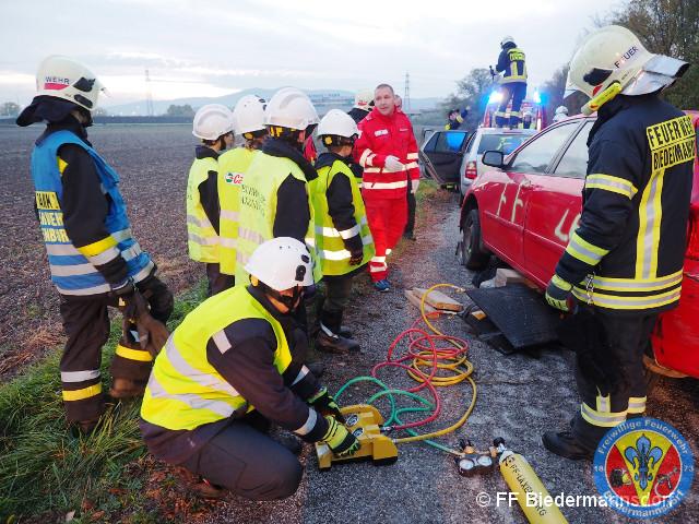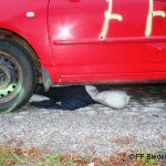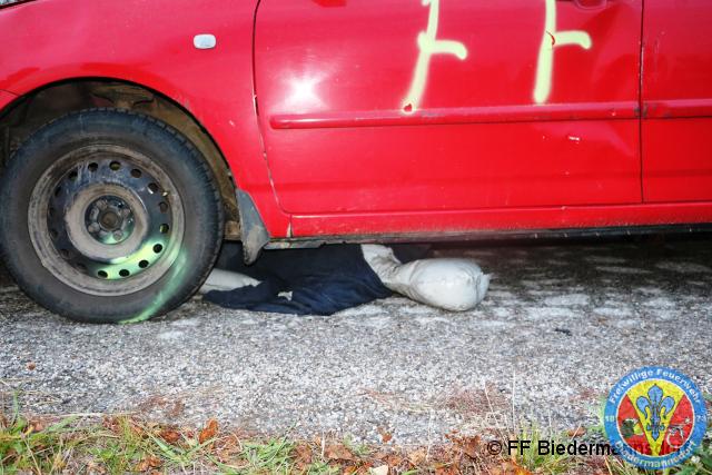 Unmittelbar nach der Schulung schrillten erneut die Pager. Das Alarmstichwort hieß, „Technischer Einsatz – Person in Notlage, Person unter PKW eingeklemmt“.