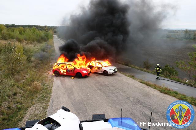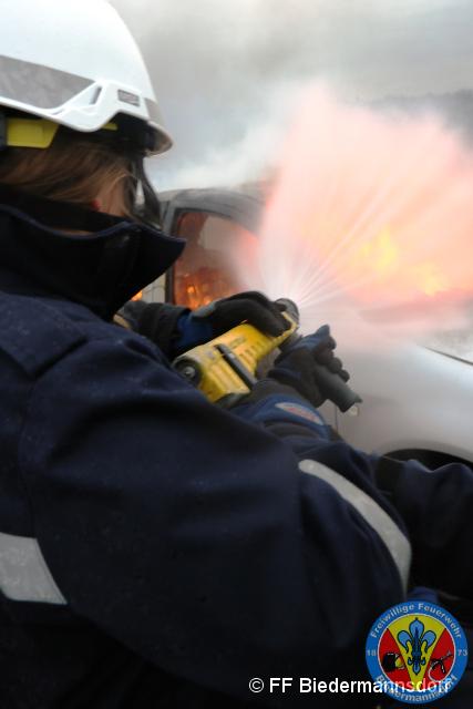 Fast schon routiniert begaben sich die FJ-Mitglieder zu dem Einsatz, wo durch den Einsatzleiter eine Brandbestätigung festgestellt wurde. Der Angriffsbefehl wurde durch die FJ-Mitglieder umgesetzt und diese begaben sich mit 2 Rohren zu den brennenden Fahrzeugen vor um diese zu löschen.