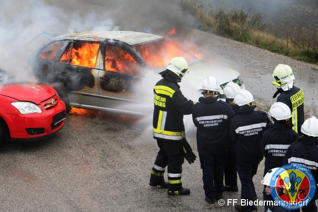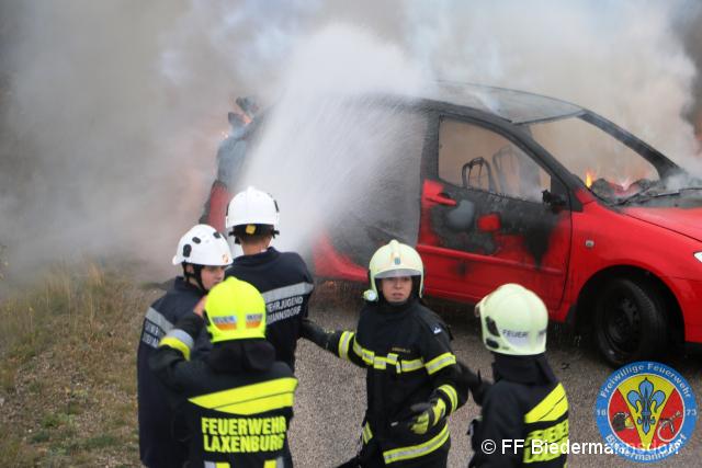 Nach Versorgung der Gerätschaften schrillte für die FJ-Mitglieder zum letzten Mal an diesem Wochenende der Pager und der Hausalarm. Die neuerliche Alarmierung lautete „Brandeinsatz – PKW Brand“.