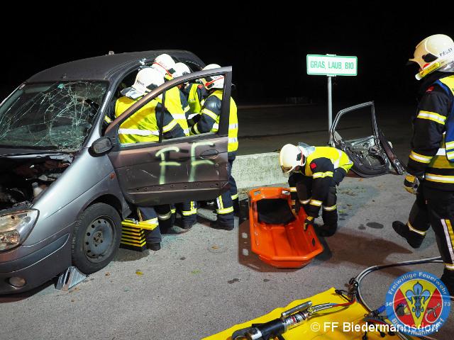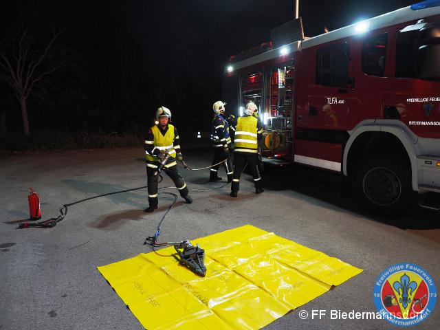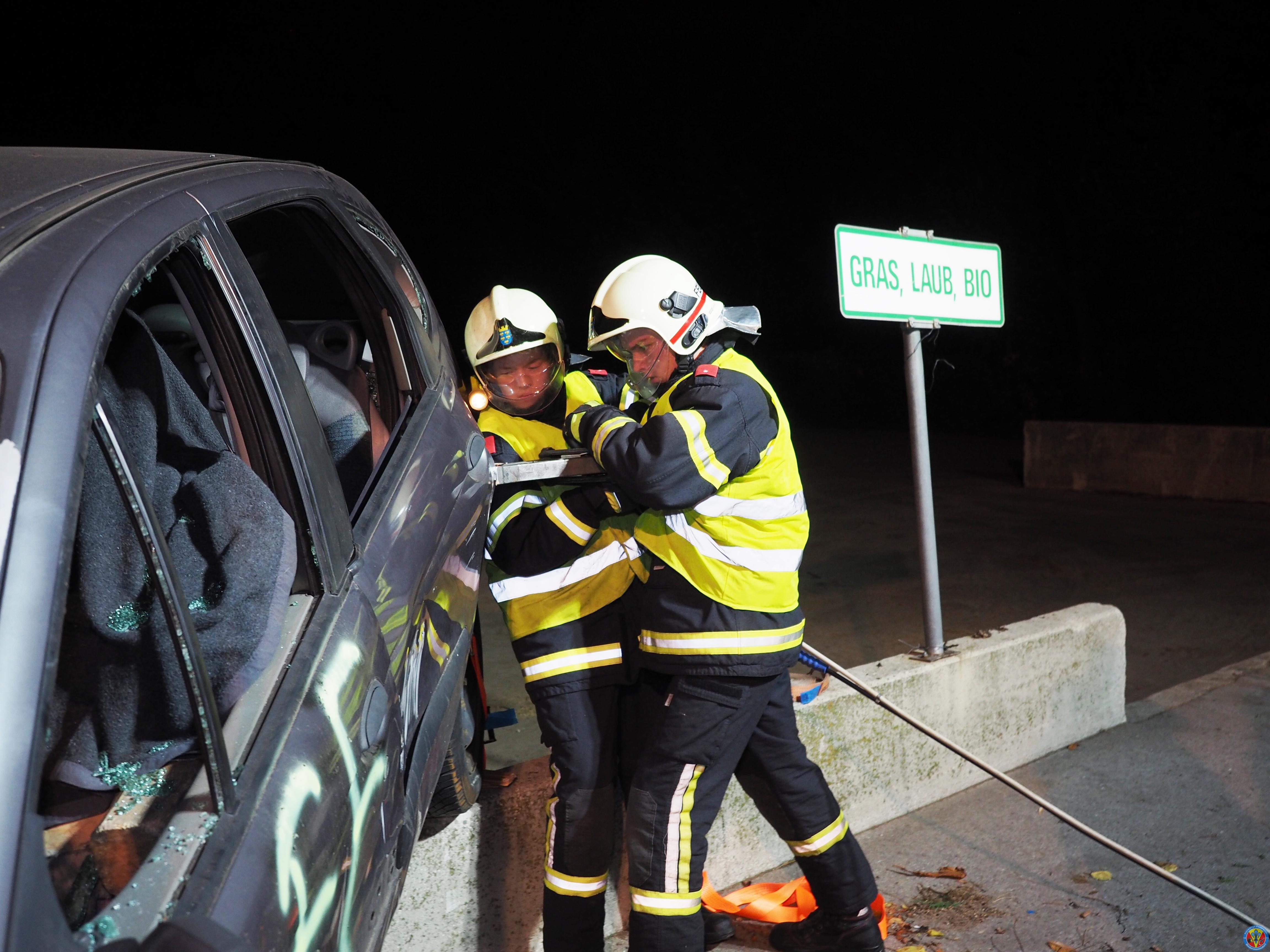 Gemäß Ausrückeordnung wurde die Übung mit dem KRF-S, RLF-A sowie TLF-A angefahren. Vor Ort wurden durch den Übungsleiter Tröszter, BI die Fahrzeugkommandanten Valenta, EV sowie Haumann, LM eingewiesen. Um ein gefahrloses Arbeiten zu ermöglichen, lag die Priorität bei der Sicherung der Wand und der verunfallten Fahrzeuge sowie beim Aufbau des Brandschutzes.