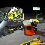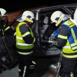 Da in den angeführten Einsatzfahrzeugen jedoch kein geeignetes Pölz Material mitgeführt wird, wurde mit der Mannschaft des KRF-S eine Sicherung bzw. Pölzung der Wand mittels Steckleiternteile vorgenommen. Zeitgleich wurde durch die Besatzung des RLF-A der Klein-LKW mittels Hebekissen angehoben und gegen seitliches Verrutschen gesichert. In kürzester Zeit konnte die Person, welche unter dem PKW eingeklemmt war, hervor gezogen und in weiterer Folge mittels hydraulischen Rettungssatz die Person aus der Fahrerkabine befreit werden. Gleichzeitig sicherte die Besatzung des TLF-A den weiteren PKW und befreite die Personen mittels hydraulischen Rettungssatz.