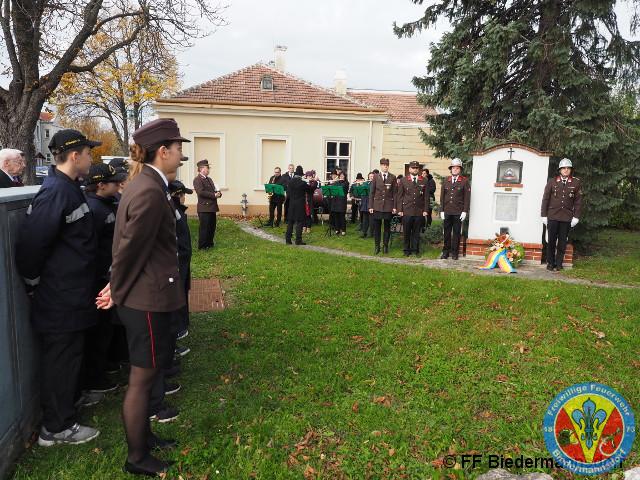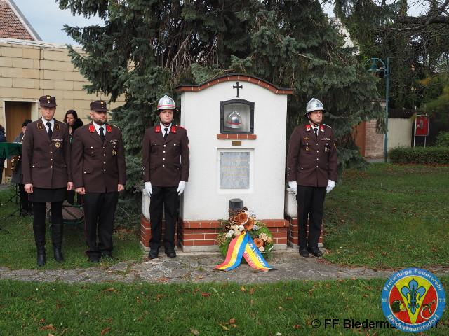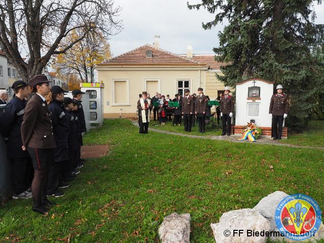 Traditionell traf sich die Mannschaft der Feuerwehr Biedermannsdorf zu Allerheiligen beim Feuerwehrdenkmal in der Ortsstraße.