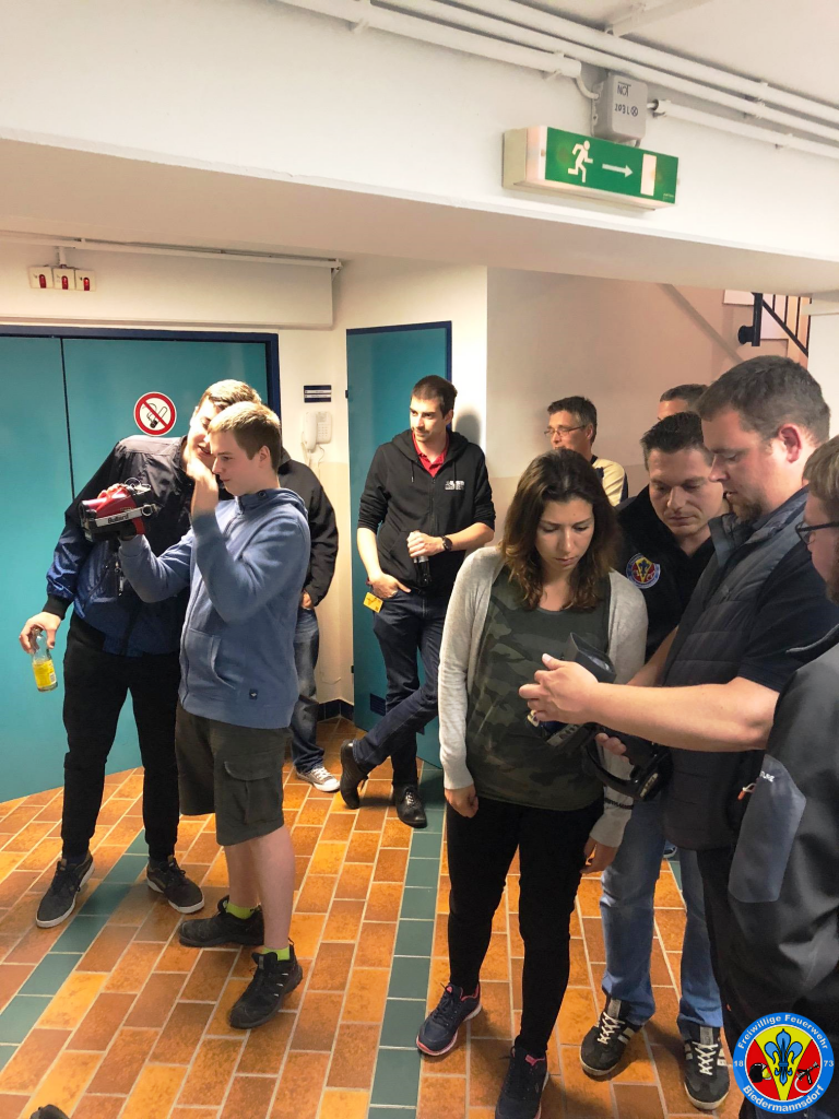 Die Vortragenden konnten mit Fachwissen und vor allem mit praktischen Erlebnissen einen hochinteressanten Abend gestalten. Nach einer ca. einstündigen Theorieschulung im Lehrsaal wurden die Teilnehmerinnen und Teilnehmer in zwei Gruppen gesplittet und in weiterer Folge wurde der Umgang mit der Wärmebildkamera geübt und das Verhalten von Rauch praktisch durchgespielt.