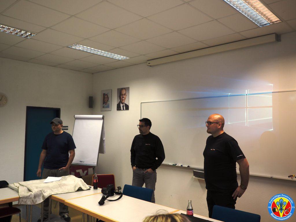Gestern war es dann so weit. Zwei Feuerwehrkameraden, welche in ihrer Freizeit spezielle Schulungen für Feuerwehren anbieten, fanden sich im Feuerwehrhaus Biedermannsdorf ein um die hiesigen Kameradinnen und Kameraden in den Bereichen
