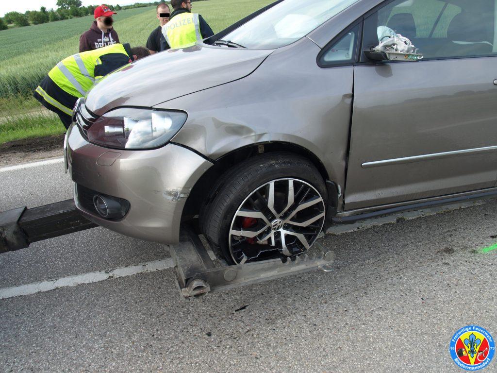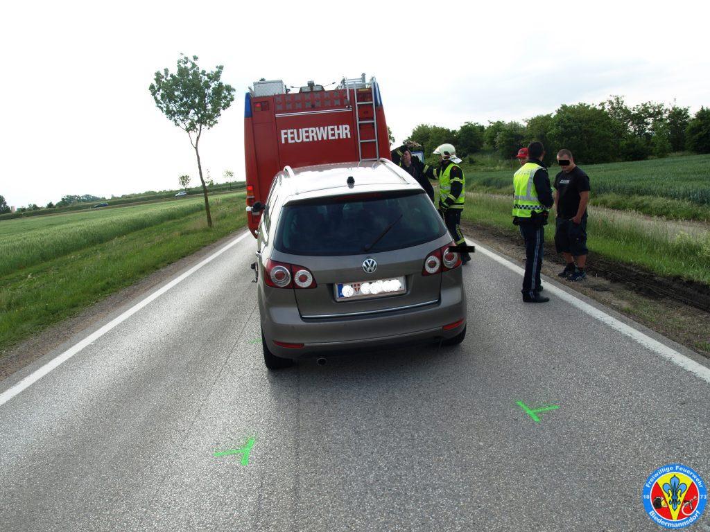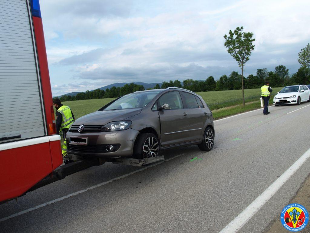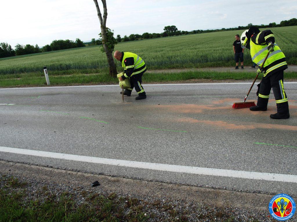 Nach einem Verkehrsunfall zwischen einem Krad und PKW wurde durch den ausgerückten technischen Zug die Unfallstelle geräumt. Der PKW wurde zum Feuerwehrhaus abgeschleppt und das Krad auf der Ladefläche des VF ortsverändert.