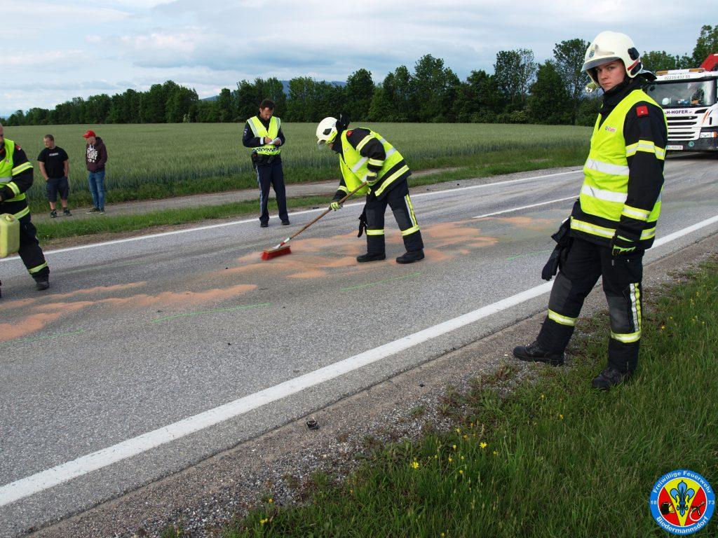 In weiterer Folge wurde die Straße von ausgetretenen Flüssigkeiten gesäubert.
