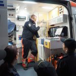 Nach Erklärung der Leitzentrale begab sich die Jugendgruppe in die Fahrzeughalle. Dort wurden die Fahrzeuge des Katastrophenzuges sowie Rettungswägen erklärt und besichtigt.