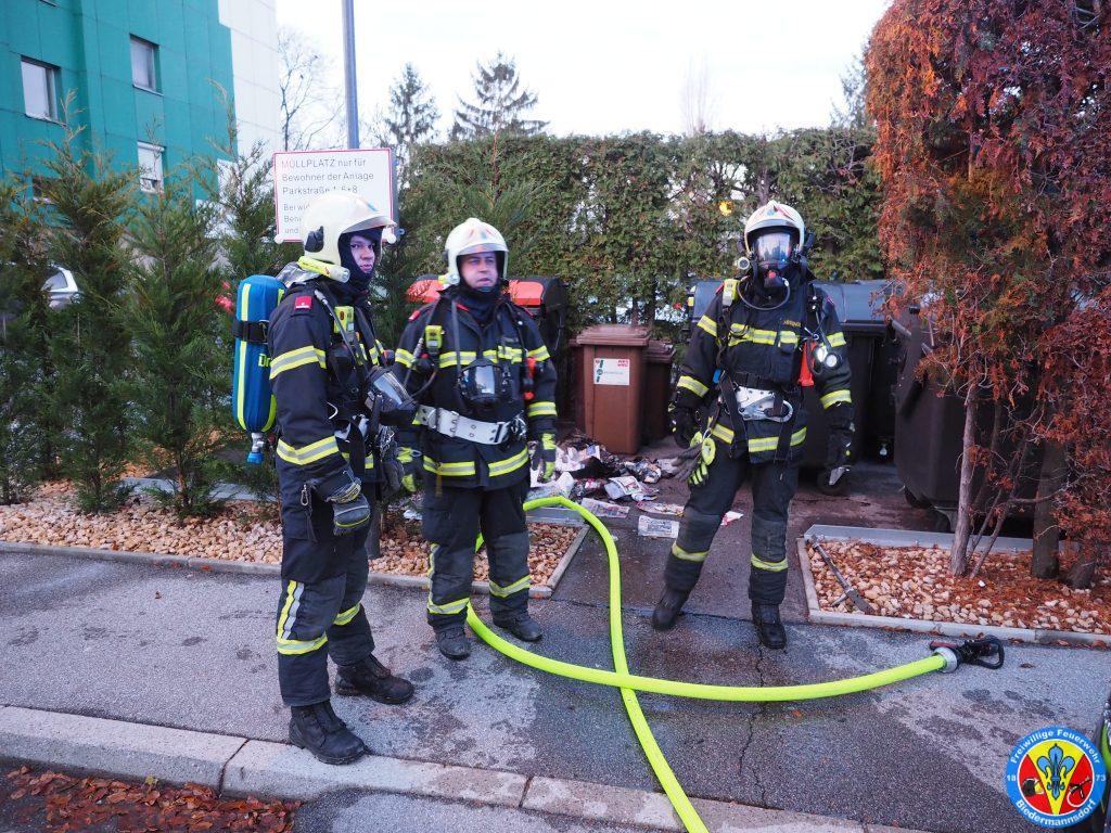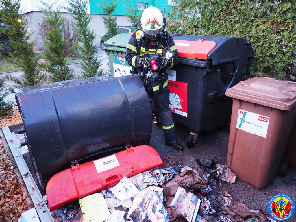 Der Alarmtext lautete „B1, Müllbehälterbrand“.