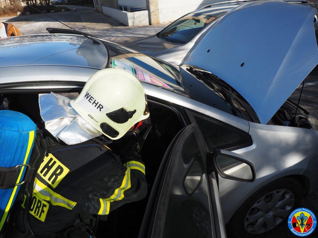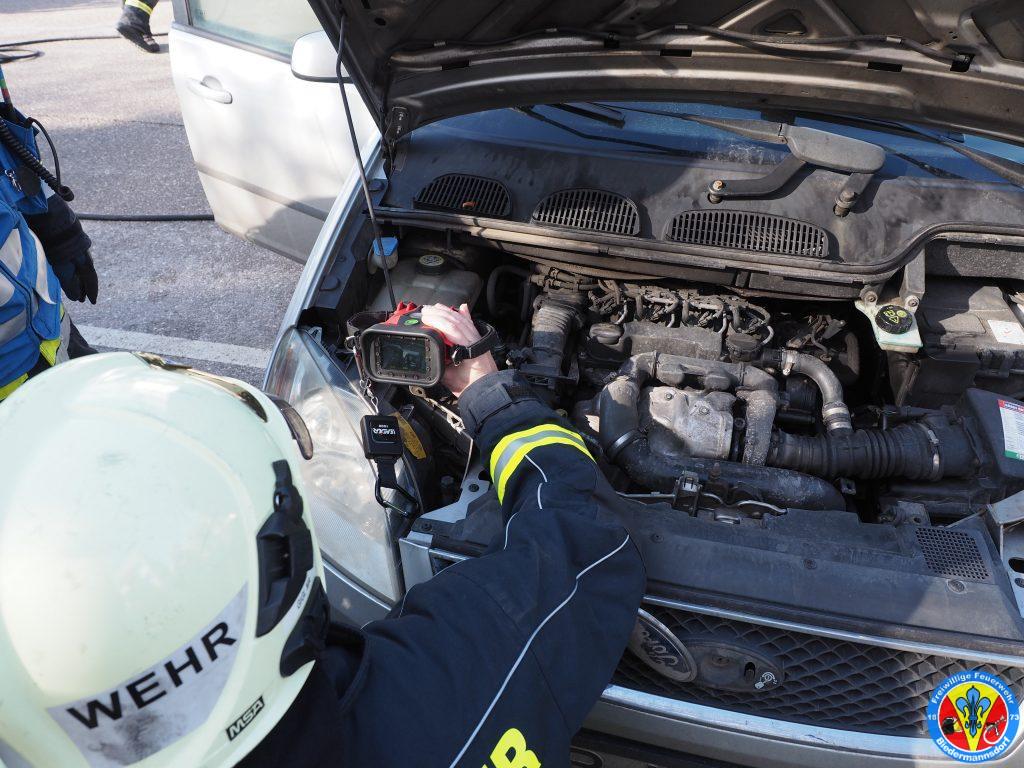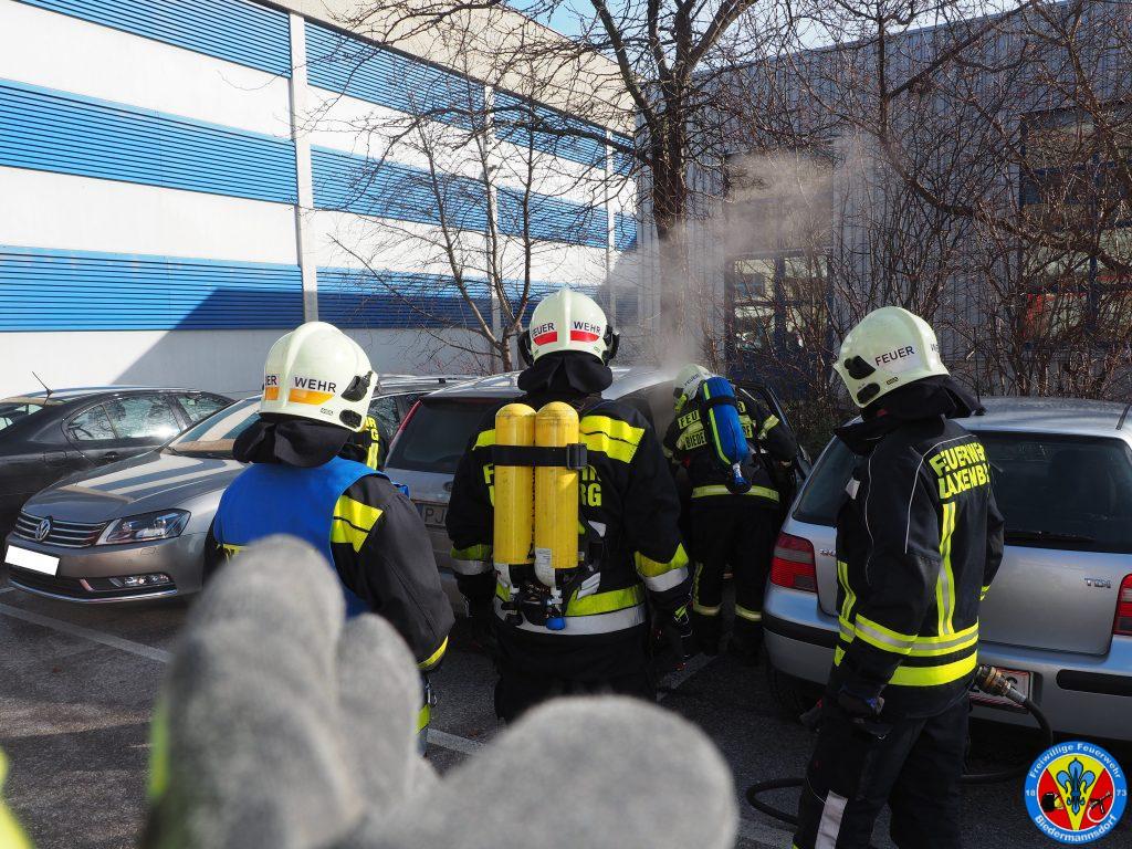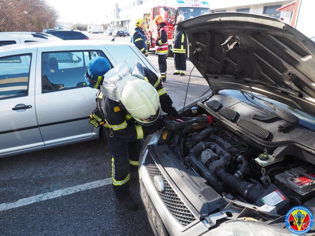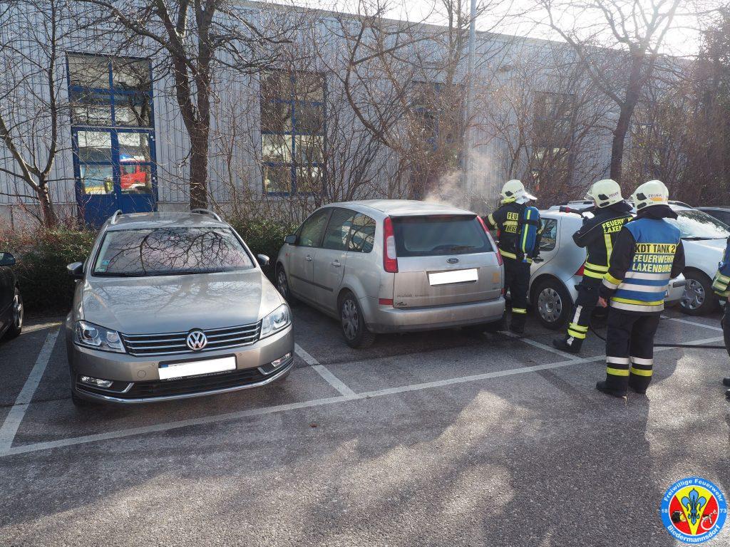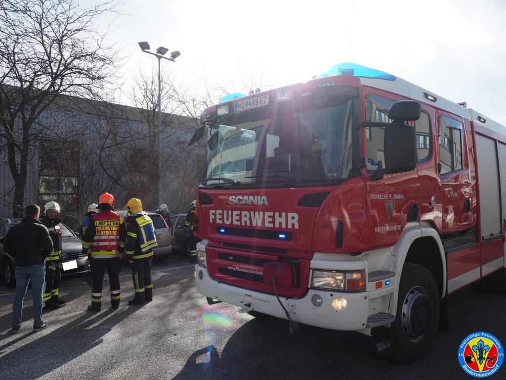 Mittels Sirene, Pager und SMS Alarmierung wurden wir am Vormittag des 8. Februar zu einem Pkw Brand in das Industriezentrum Süd Straße 14 alarmiert. Gleichzeitig wurde auch die FF Laxenburg gem. Alarmbild B2 mitalarmiert. Aufgrund einer falschen Ortsangabe durch den Anzeiger wurde zuerst die Straße 14 als Einsatzort angegeben. Als dort nichts gefunden werden konnte, konnte erst durch Telefonate der richtige Einsatzort die Straße 7 als Einsatzort eruiert werden. Kurz vor Tank Biedermannsdorf traf das HLF 3 der FF Laxenburg welches gerade auf einer Dienstfahrt war am Einsatzort ein. Vor Ort konnte ein Brand im Innenraum eines geparkten Pkw wahrgenommen werden. Nachdem der Fahrzeuglenker nicht anwesend war wurde eine Seitenscheibe eingeschlagen und der Brand mit einem HD Rohr von Tank Biedermannsdorf abgelöscht. Zur Sicherung der Einsatzkräfte wurde auch eine Airbagspinne am Lenkrad angebracht. Nachdem der Fahrzeuglenker am Einsatzort eingetroffen war wurde die Motorhaube geöffnet und der Motorraum mittels Wärmebildkamera kontrolliert. In weiterer Folge wurde der Pkw aus der Parklücke geschoben. Die weiteren Maßnahmen wurde durch die ortszuständige FF Laxenburg durchgeführt. Die Feuerwehren Biedermannsdorf und Laxenburg standen mit 4 Fahrzeugen und ca. 15 Mitgliedern rund 1 Stunde im Einsatz.