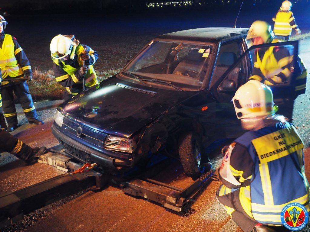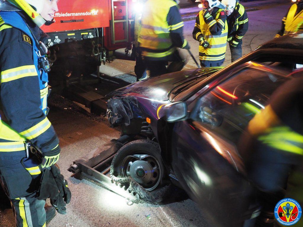 Der PKW wurde durch Kräfte der Feuerwehr Biedermannsdorf mittels Seilwinde und Hubbrille geborgen und in weiterer Folge gesichert abgestellt.