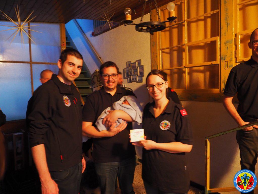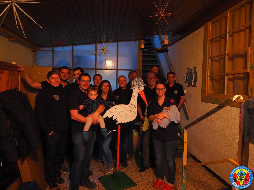 Zu diesem Anlass besuchten Kameraden der Feuerwehr am 22.02 die Familie um Glückwünsche auszusprechen und um den mittlerweile schon traditionellen Storch aufzustellen.