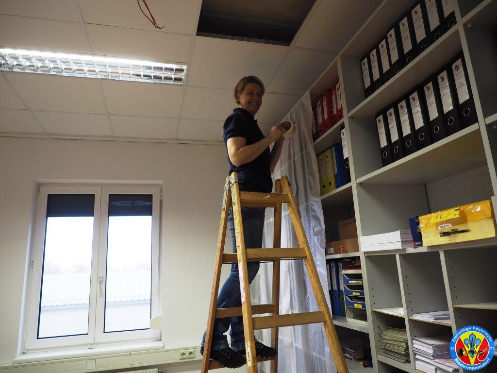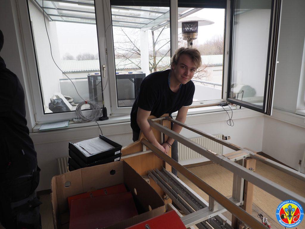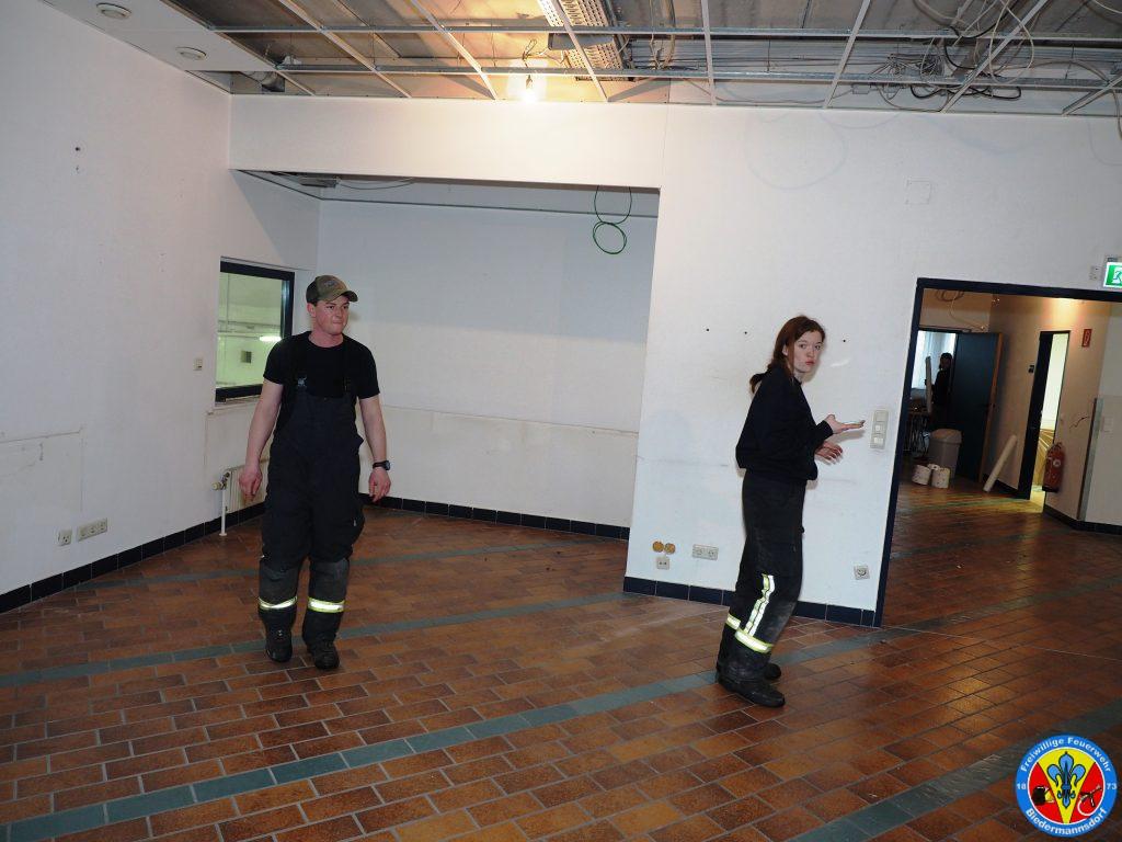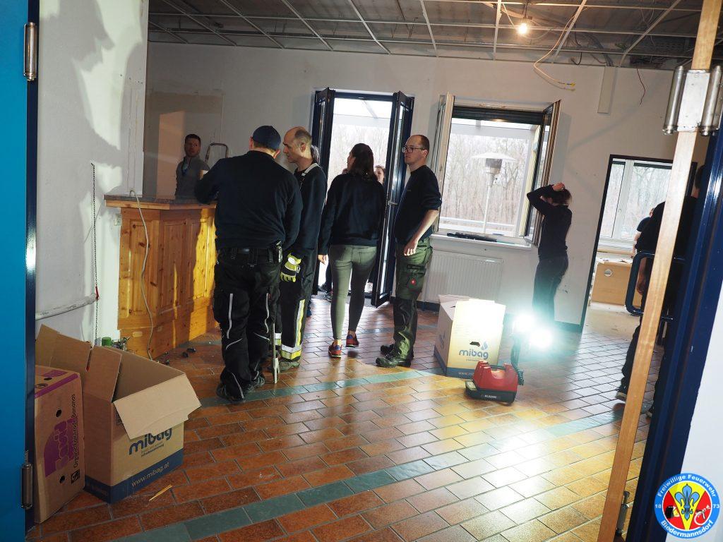 Nebenbei wurde der Dachboden entrümpelt, der Fitnessraum fertiggestellt, das Katastrophenlager sortiert und im Kellerbereich eine kleine Einsatzzentrale sowie eine interimsmäßige Verwaltung eingerichtet. Der Jugendraum wird für die Übergangszeit als Aufenthaltsraum genutzt.