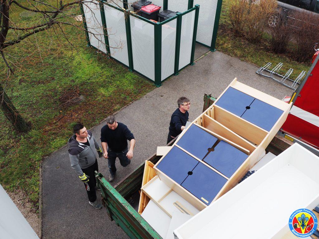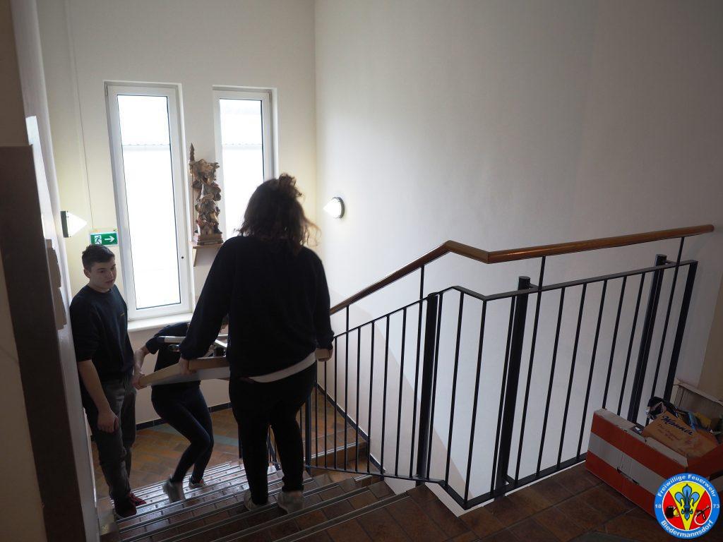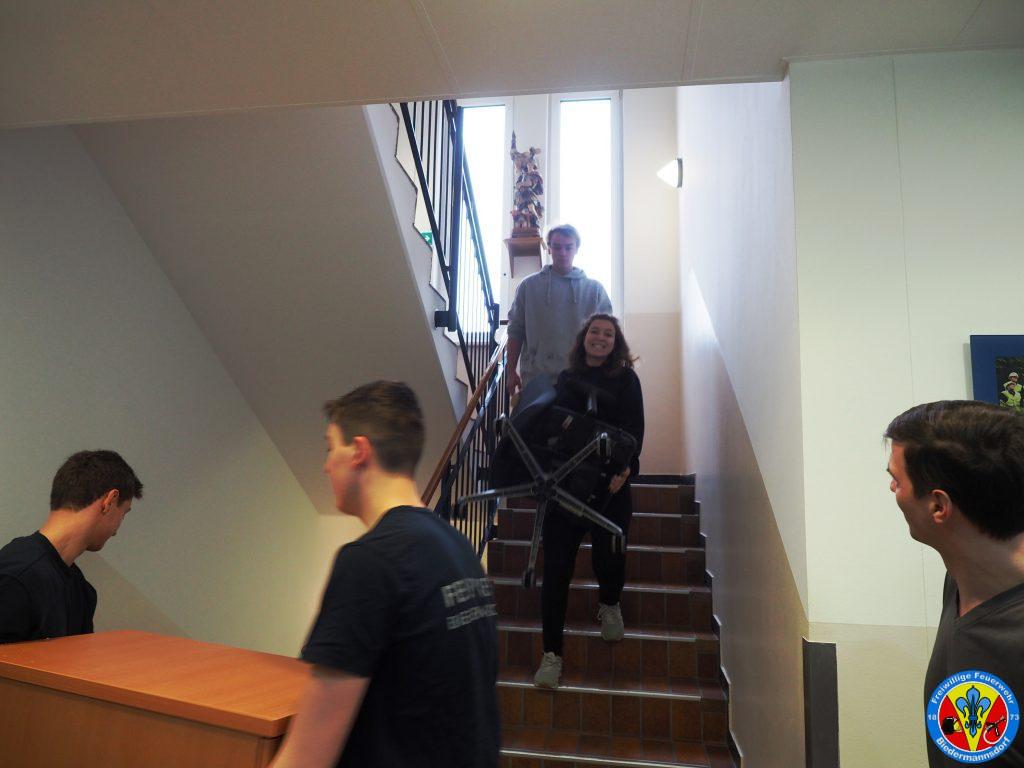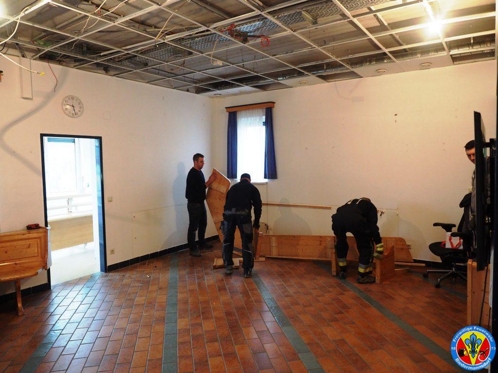 Nebenbei wurde der Dachboden entrümpelt, der Fitnessraum fertiggestellt, das Katastrophenlager sortiert und im Kellerbereich eine kleine Einsatzzentrale sowie eine interimsmäßige Verwaltung eingerichtet. Der Jugendraum wird für die Übergangszeit als Aufenthaltsraum genutzt.