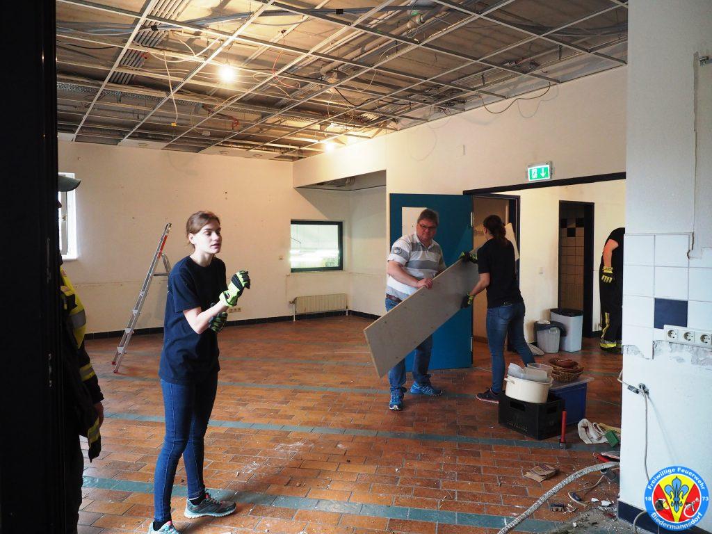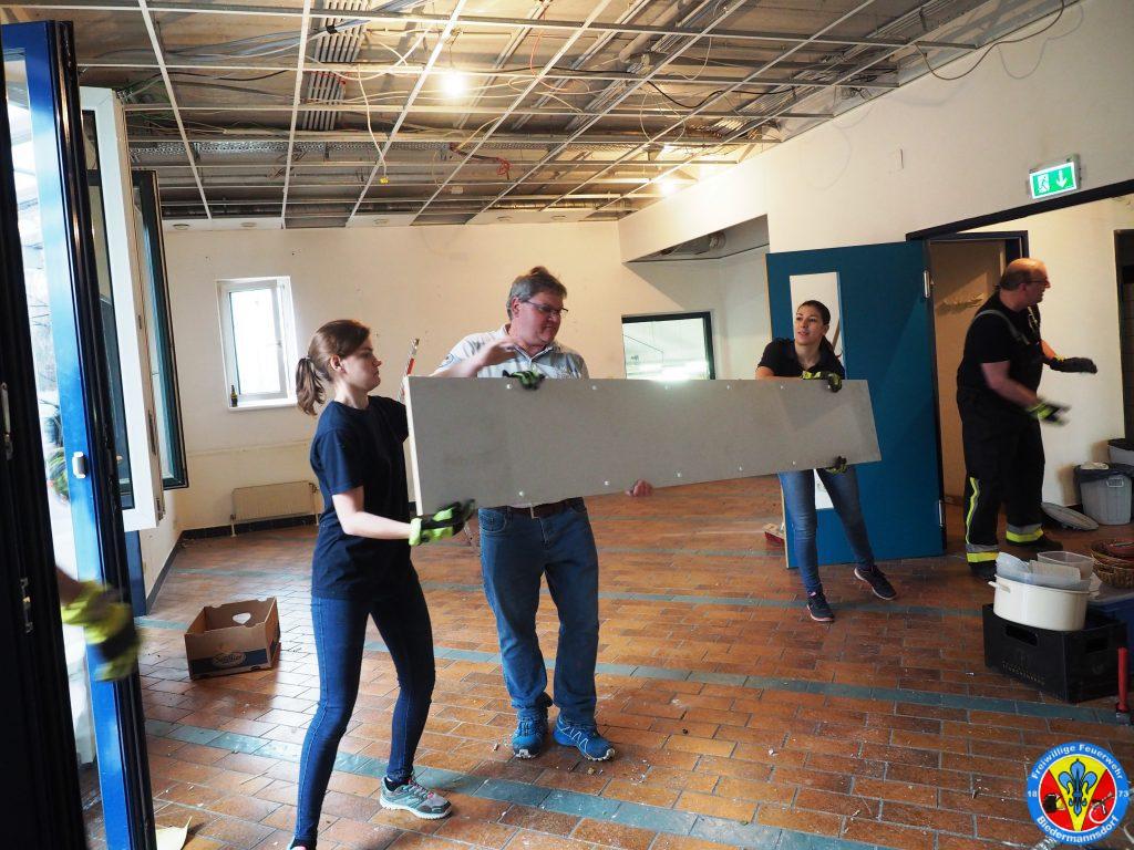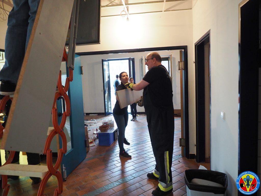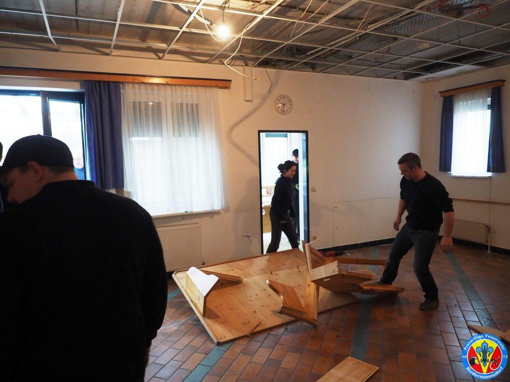 Doch bevor das Neue kommt, musste das Alte raus. Ganz nach dem Motto „viele Hände, schnelles Ende“ trafen sich am Samstag 32 Mitglieder, welche in rund 250 Frau/Mann Stunden sämtliche Installationen im Obergeschoß abbauten und entsorgten.