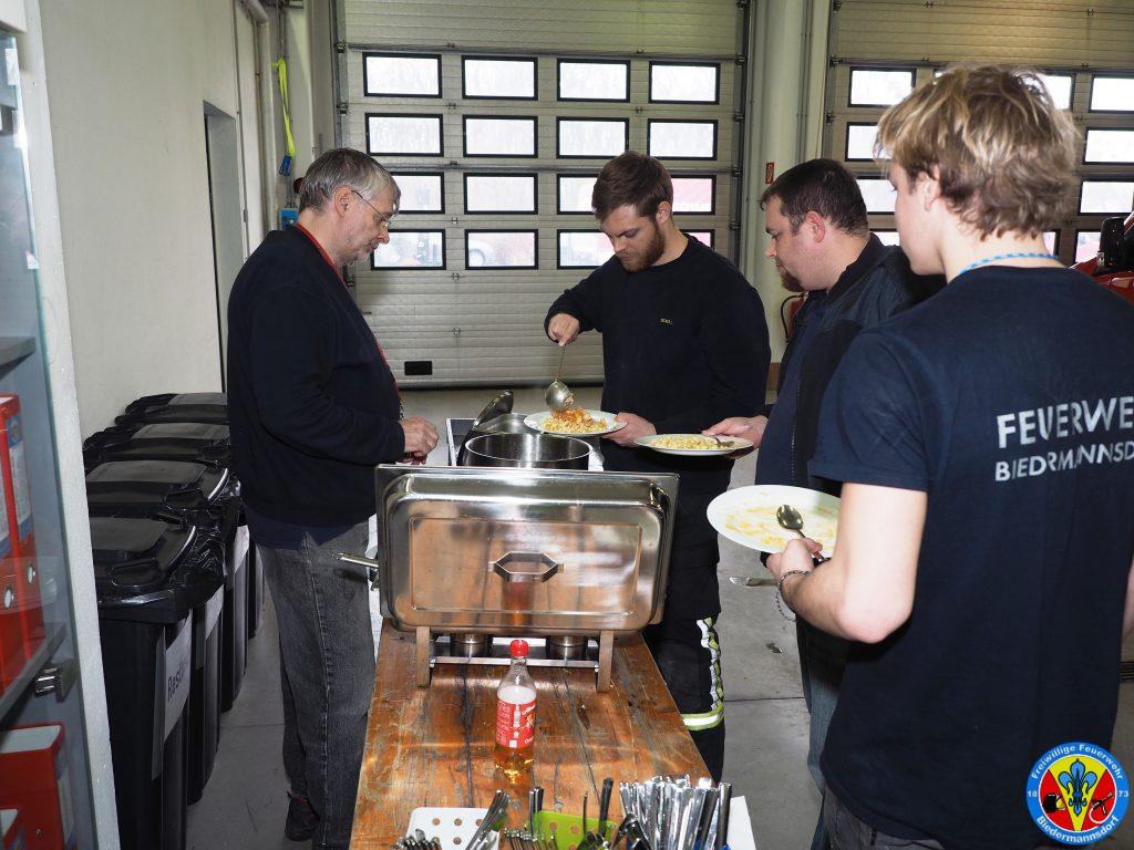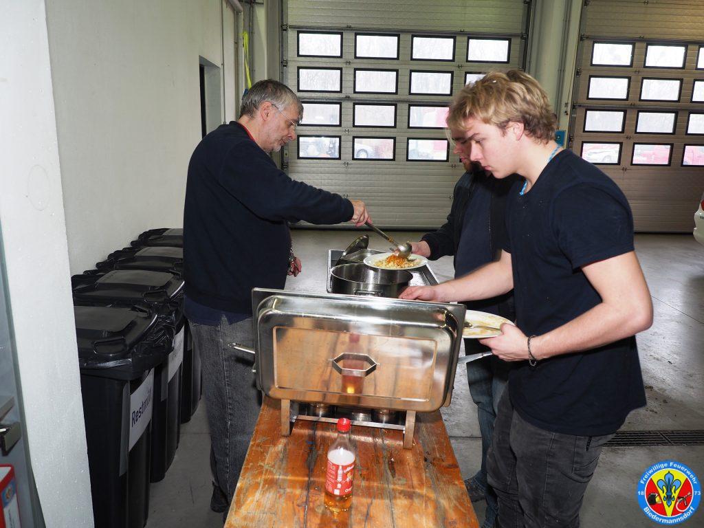 Im Anschluss an die schweißtreibende Arbeit wurde durch den Leiter des Versorgungsdienst EV Thomas VALENTA die hungrigen Mäuler mit gewohnt bestem Essen verköstigt und der Nachmittag in kameradschaftlicher Runde ausgeklungen.