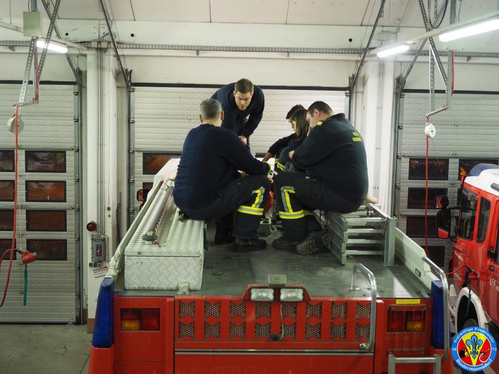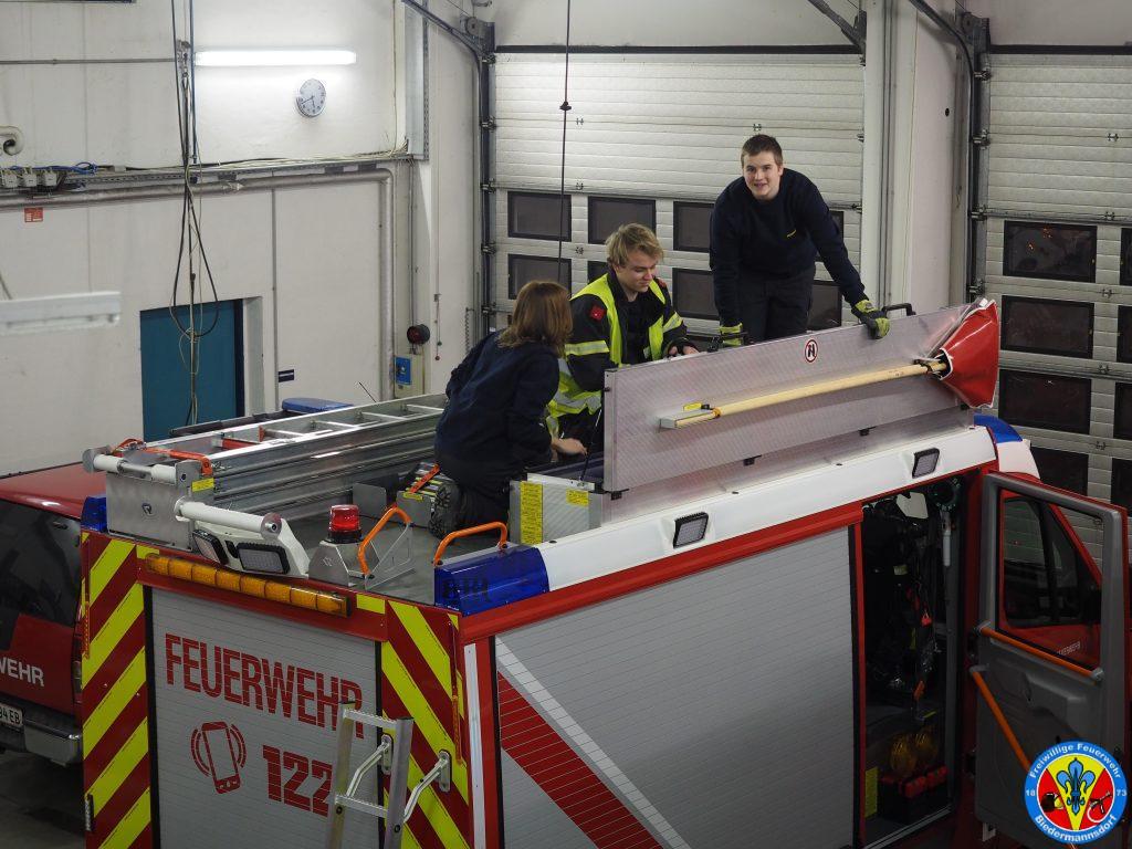 Der Winterschwerpunkt „Fahrzeugkunde“ wurde an den letzten Dienstagen fortgesetzt. Im Gruppenbetrieb wurde das Rüst-Lösch Fahrzeug Allrad, kurz „RLF-A“, geschult.