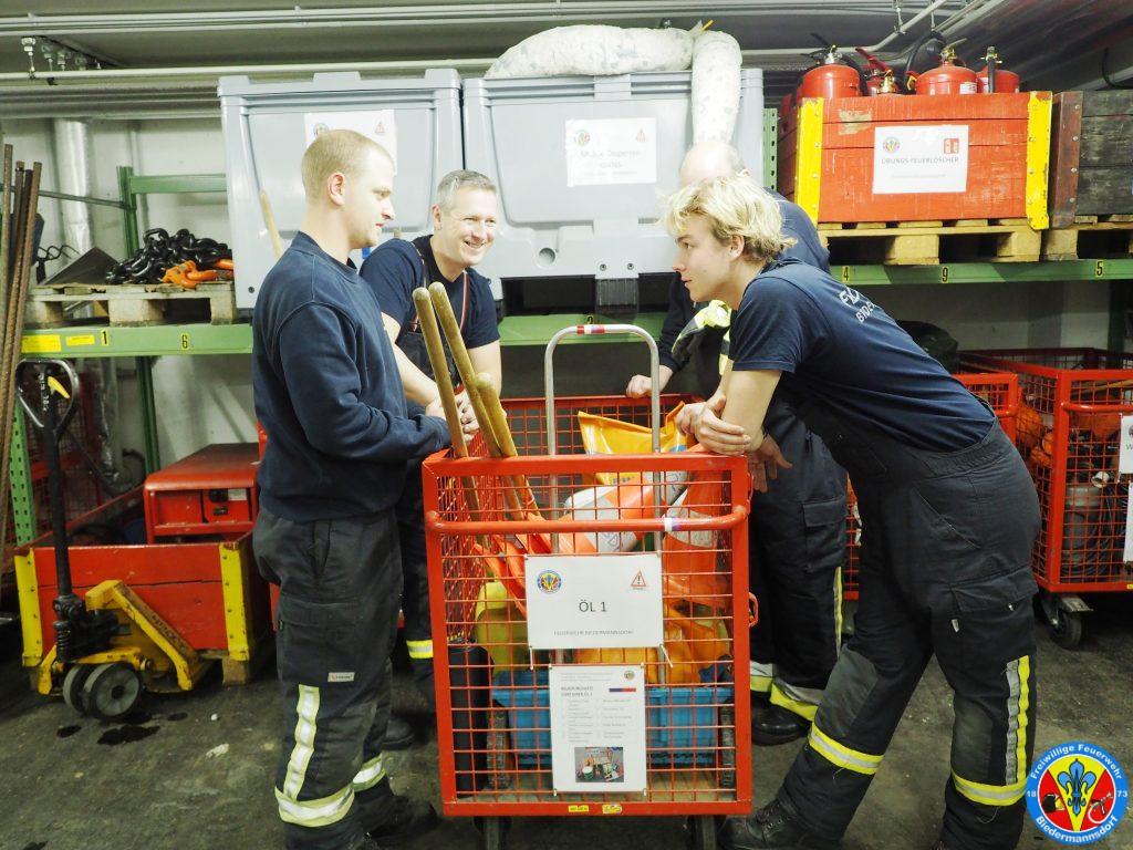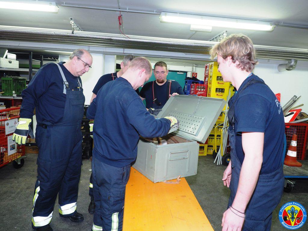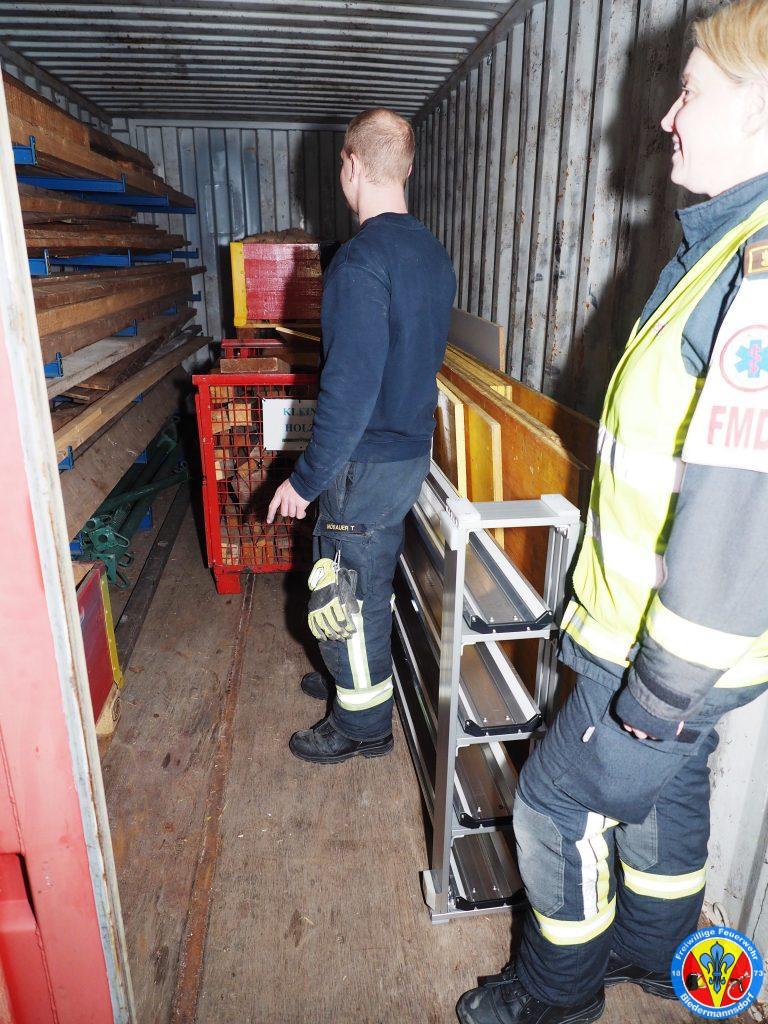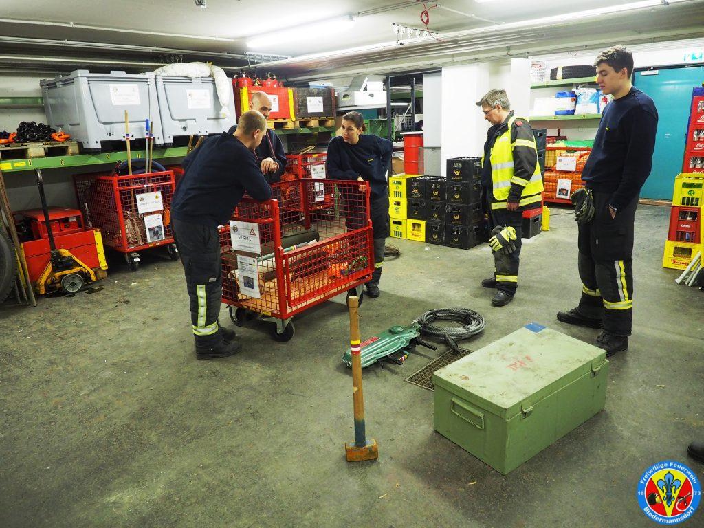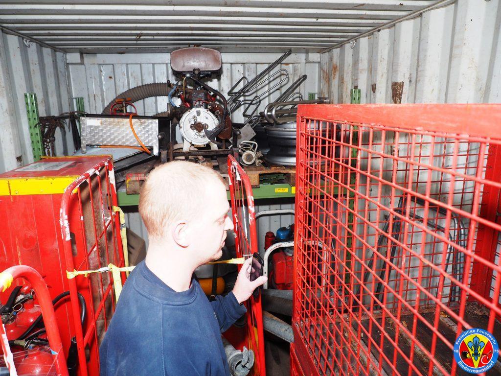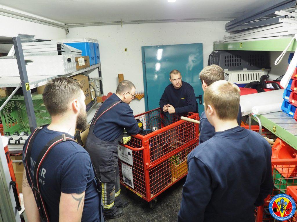 Im Gruppenbetrieb wurde an zwei Dienstagen das Rüstfahrzeuge „RF“ sowie das Katastrophenlager und die Einsatzcontainer geschult.