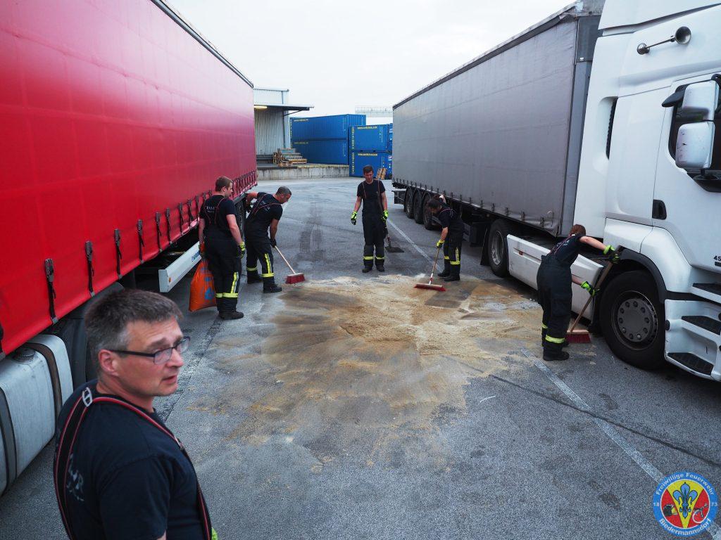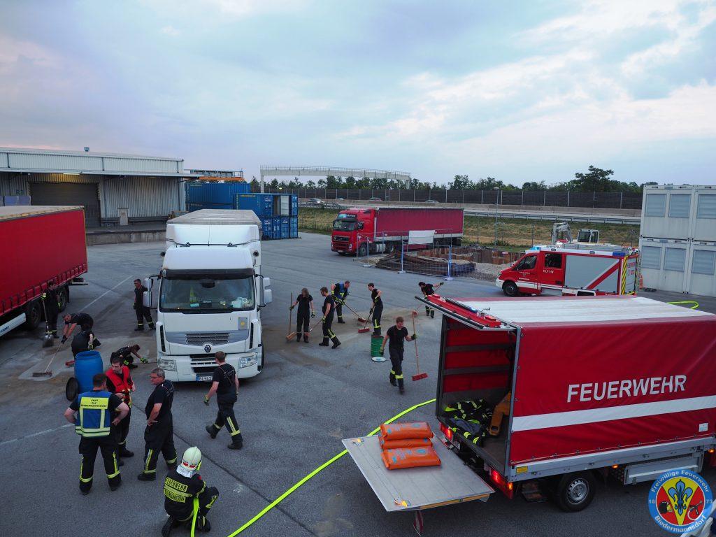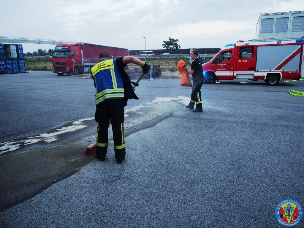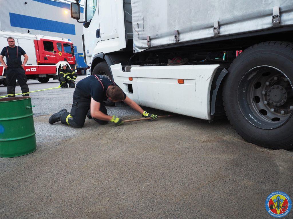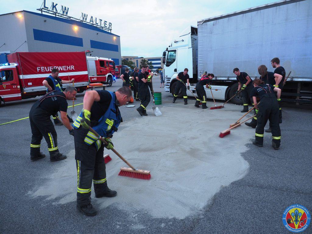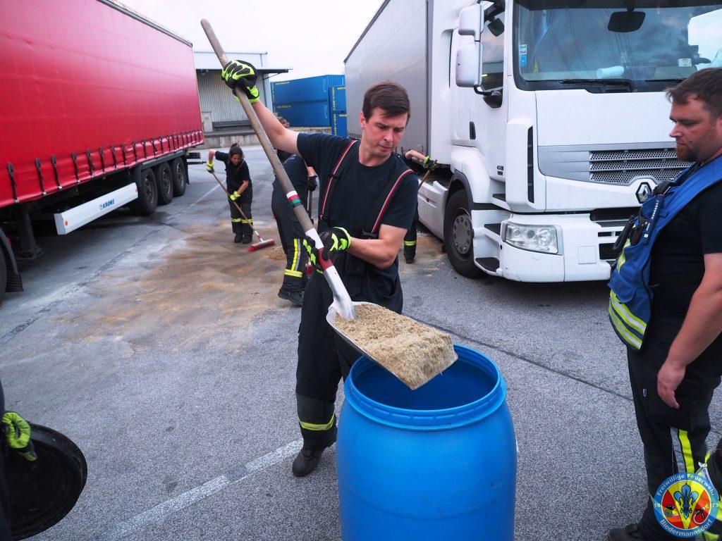 Durch eine Unachtsamkeit bei einem Tankvorgang lief dem Lkw Fahrer eine unbekannte Menge an Diesel auf dem Parkplatz aus. Durch den anwesenden Sicherheitsdienst wurde bereits mit dem Binden des ausgetretenen Diesels begonnen. Diese Tätigkeiten wurden von den eingesetzten Mitgliedern fortgesetzt. Weiters wurde ein Brandschutz mit einem C-Rohr vorsorglich aufgebaut. Zum Glück gelangte kein Diesel in das Kanalnetz bzw. in das Erdreich. Dadurch konnte der ausgeflossene Diesel mittels Bindemittel gebunden und vom Asphalt entfernt werden.
