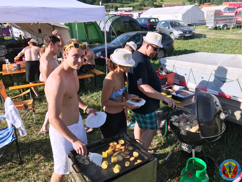 Danach wurde gemeinsam das Zelt errichtet und anschließend kühlte man sich in der daneben fließenden Traisen und ließ den Abend mit einer Grillerei ausklingen. Samstags ging es in das Schwimmbad nach Wilhelmsburg wo gemeinsam mit Kameraden aus Niederösterreich Erfahrungen getauscht wurden.