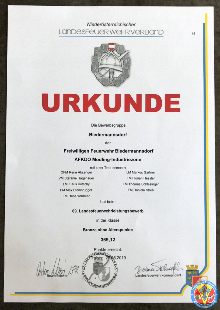 Der Leistungsbewerb mit einhergehendem Zeltlager der aktiven Mitglieder fand in Traisen im Zeitraum von Freitag 28.06.2019 bis Sonntag 30.06.2019 statt. Freitagmittag trat die junge FLA-Gruppe für das Leistungsabzeichen in Bronze an und meisterte dies mit Leichtigkeit.
