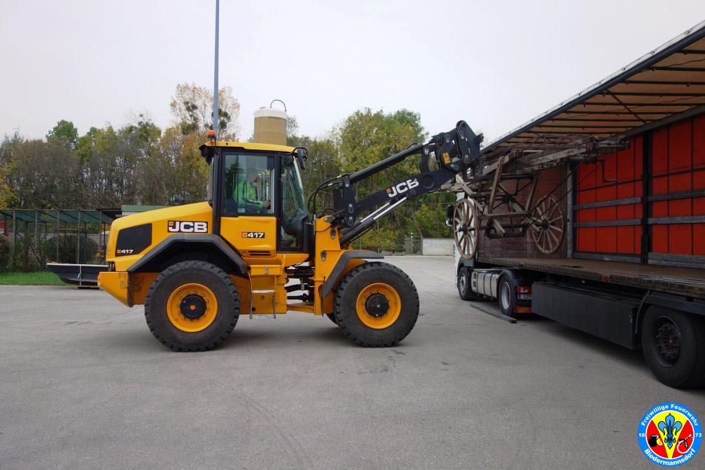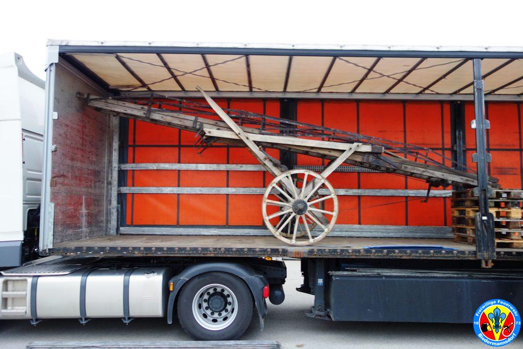 Der Verein „Oldtimergruppe TLFA 4000 Kitzbühel“ zeigte reges Interesse. Am heutigen Tag wurde die traditionelle Leiter durch eine Speditionsfirma abgeholt und mit tatkräftiger Hilfe der Bauhofmitarbeiter schonend verladen.