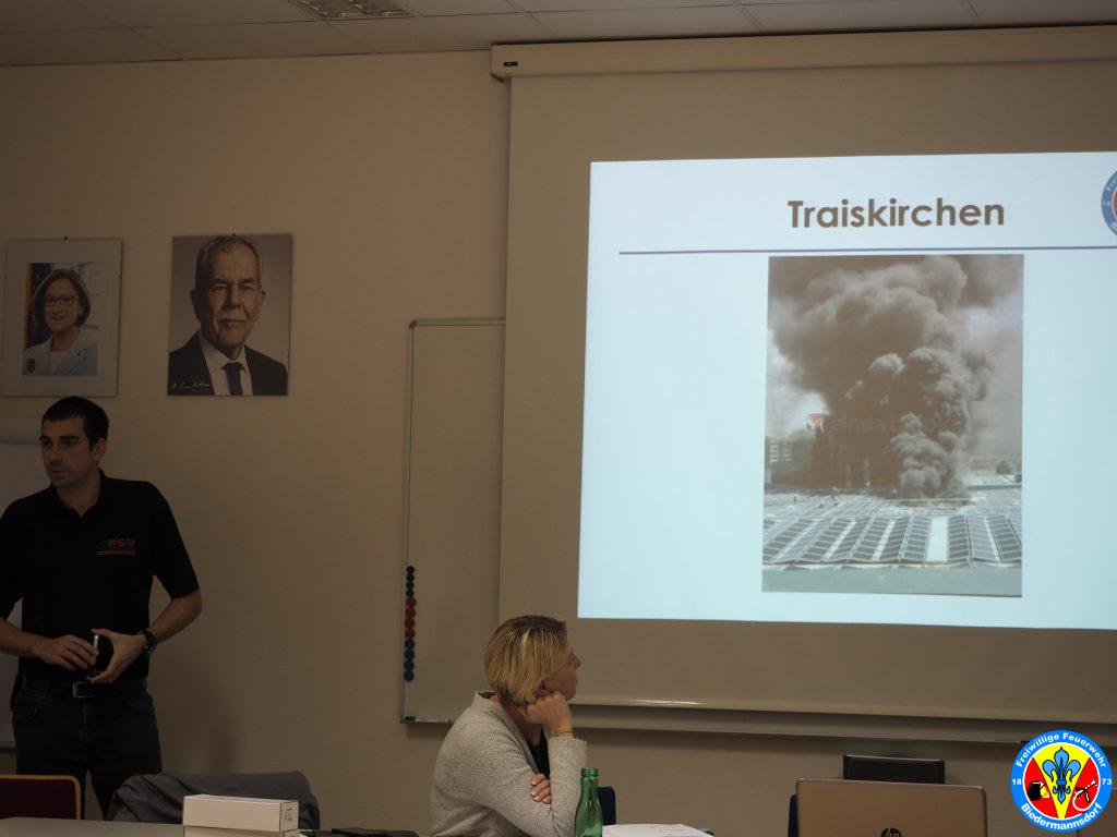Am Montag 04.11.2019 wurde die regelmäßige Chargenbesprechung abgehalten. Neben den anfallenden Themen wie zum Beispiel das Budget 2020, das Clubbing 2020, sowie die Installierung der Kinderfeuerwehr, wurde unter anderem auch eine Schulung zum Thema Brände und Gefahren von Photovoltaikanlagen gehalten.