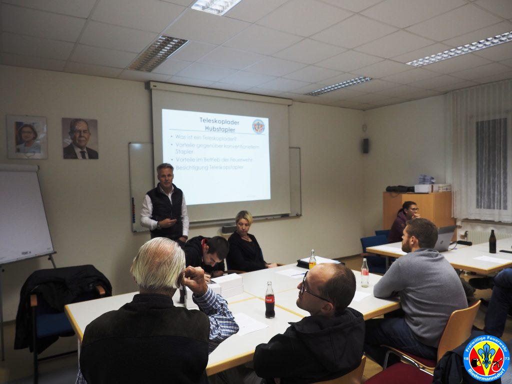 Am Folgetag wurde eine Mitgliederversammlung gehalten. Wiederum wurde der Teleskoplader präsentiert und die vielseitigen Anwendungsmöglichkeiten hervorgehoben. Ins besonders bei Katastrophenfällen wie zum Beispiel bei Hochwasser bietet der Teleskoplader auf Grund seiner Wendigkeit und der Geländegängigkeit, der Allradlenkung sowie des Allradantriebs und der Straßenzulassung fast unbegrenzte Einsatzmöglichkeiten. 2,2 Tonnen können auf eine Höhe von 5,4 Meter angehoben werden. Der horizontale Schub ermöglicht die problemlose Versetzung von Lasten. Durch die geringe Bauhöhe kann das Fahrzeug auch in Tiefgaragen eingesetzt werden und mit dem bereits in Planung gehaltenem Abschleppplateu des WLFA-K auch auf weiten Distanzen eingesetzt werden.