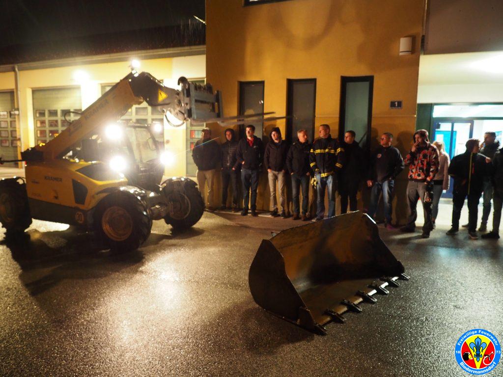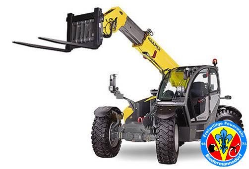 Zu diesem Zweck wurde der Teleskoplader der Marke KRAMER (2205) durch Vertreter der Firma WACKER NEUSON vorgestellt. Durch die Vielzahl der Anwendungsmöglichkeiten auf Grund des vertikalen und horizontalen Verschubs, und verschiedener Anbaugeräten wie zum Beispiel Gabelzinken, verschiedene Schaufeln, Lasthaken oder Kehraufsätze sprachen sich die Führungskräfte der Feuerwehr deutlich für die Anschaffung des Teleskopladers aus.