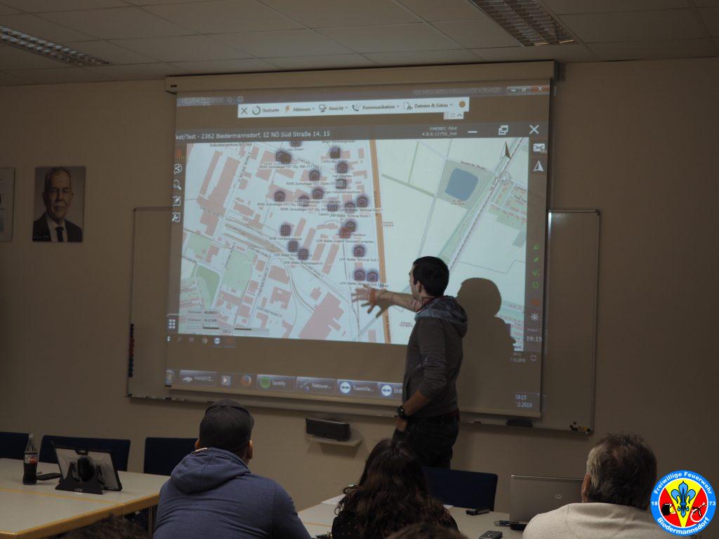Neben Nachschlagewerken stellt das Programm EMEREC eine große Unterstützung dar. Dieses wurde durch Kommandant Stellvertreter BI Michael Ing. FELBERBAUER sowie dem Sachbereichsleiter Nachrichtendienst SB Hans WIMMER erklärt und die umfassende Dokumentationsmöglichkeit vorgezeigt.
