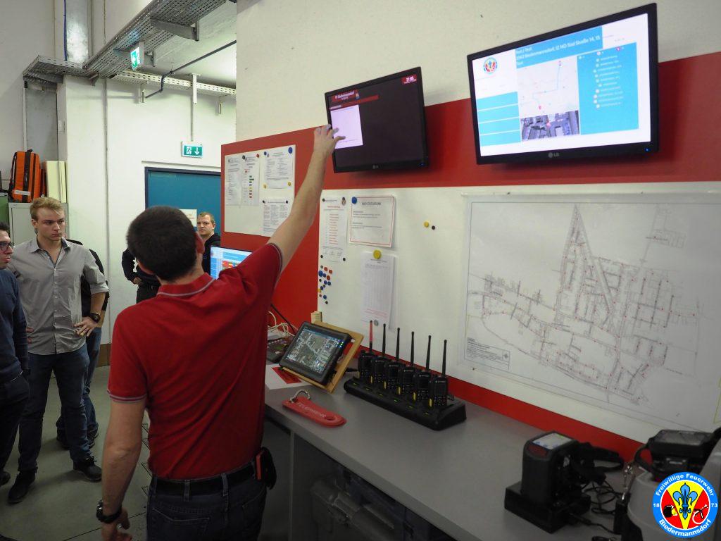 Im Anschluss daran wurde in die Fahrzeughalle zum neu installierten Infopoint verlegt und hier ebenfalls jede Funktion und die Führungsunterstützung für einen Einsatz vorgezeigt.