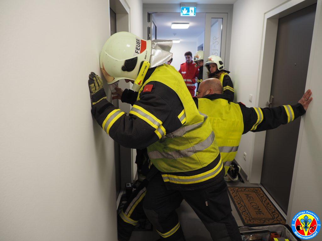 Eine Person in Notlage erforderte eine Türöffnung am Leo Eichinger-Ring. Durch Aufklopfen der Eingangstüre konnte der Patient dem bereits anwesenden Rettungsdienst übergeben werden.