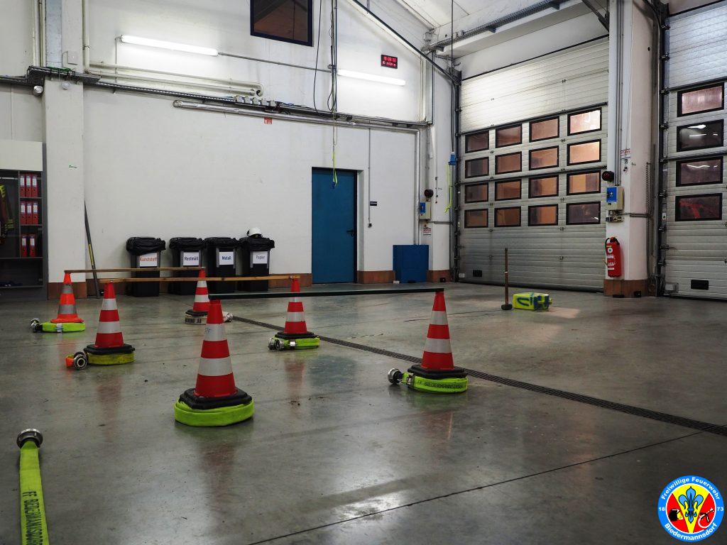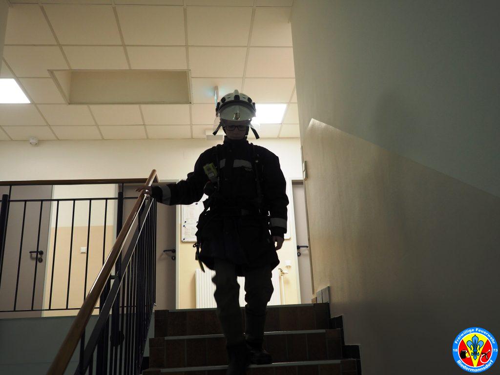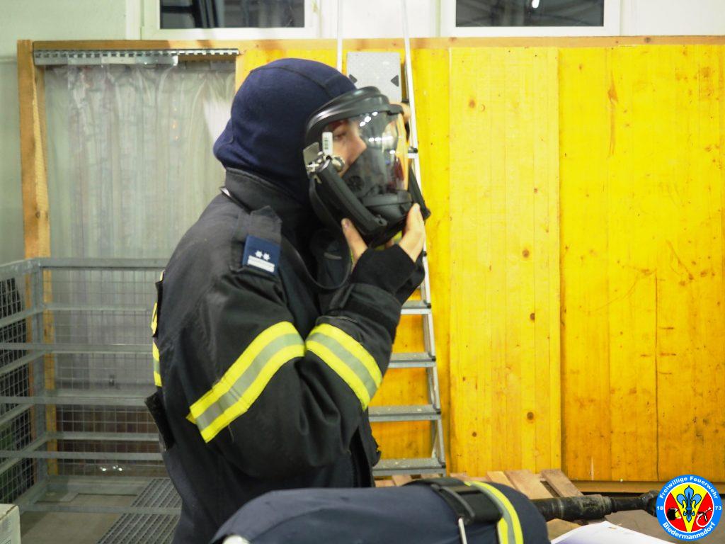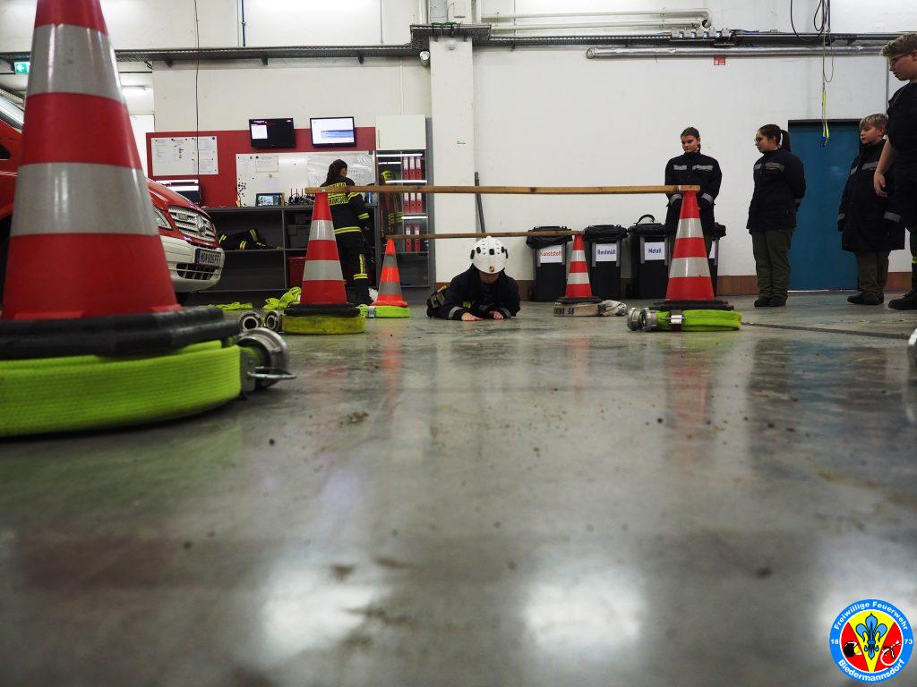Im Anschluss daran legten die Feuerwehrjugendmitglieder das Atemschutzgerät an und absolvierten die für die Kinder adaptierten Stationen.