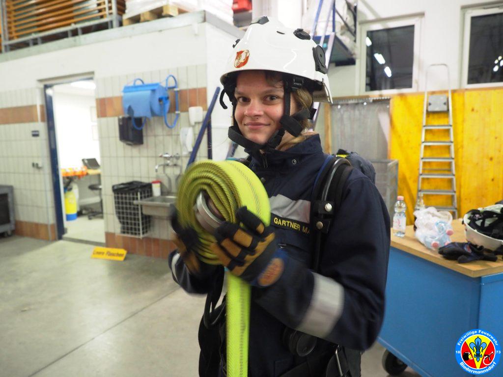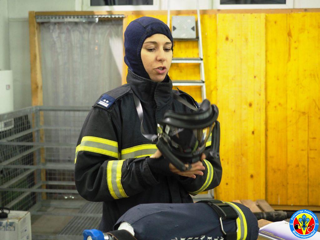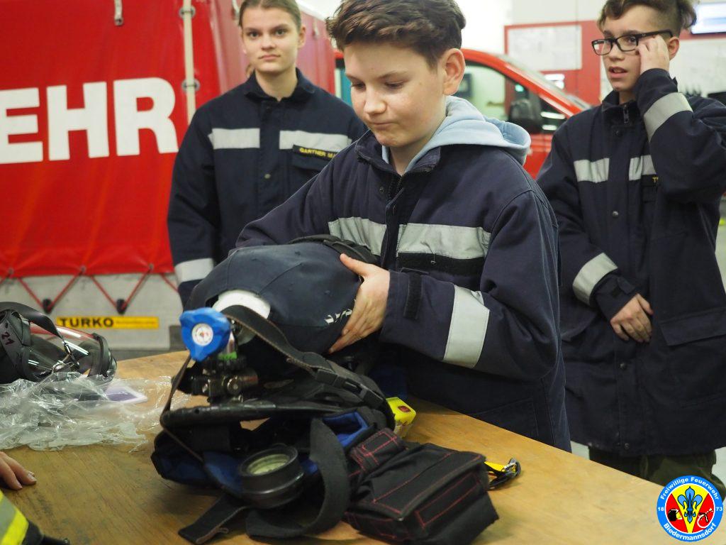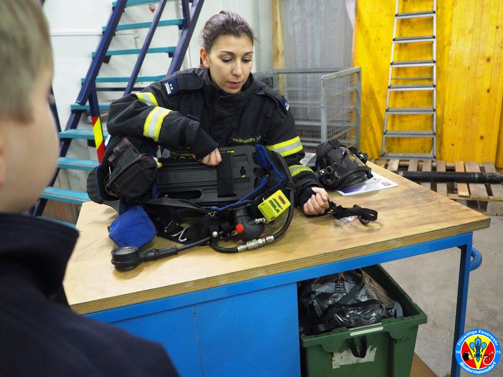 Zu Beginn wurde das Atemschutzgerät durch die Jugendbetreuerin OVM Stefanie HAGENAUER erklärt und der Ablauf und die Notwendigkeit des Finnentests erläutert.