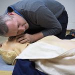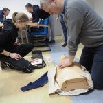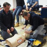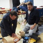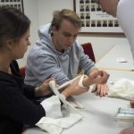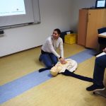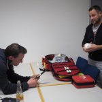 Die Mitglieder mussten sich gegenseitig verbinden und übten die zu setzenden Sofortmaßnahmen bei lebensbedrohlichem Patientenzustand.