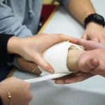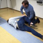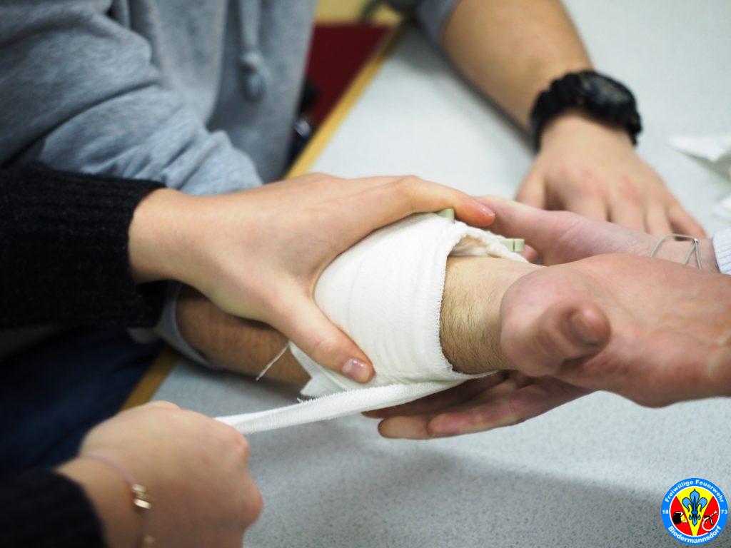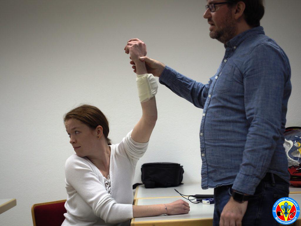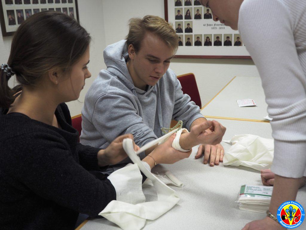 Die Mitglieder mussten sich gegenseitig verbinden und übten die zu setzenden Sofortmaßnahmen bei lebensbedrohlichem Patientenzustand.