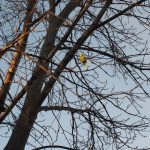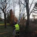 Vor Ort angekommen, erwartete schon der mutige Felix die Feuerwehr und zeigte den Einsatzkräften den Vogel. Der Wellensittich hat sich jedoch bereits vom Holzstapel losreissen können und saß auf einem Baum. Auf Grund der Tatsache dass der Vogel trotz allem im Freien erfrieren würde, wurde unter dem Kommando des kleinen Felix der Vogel mittels „Casher“ eingefangen.