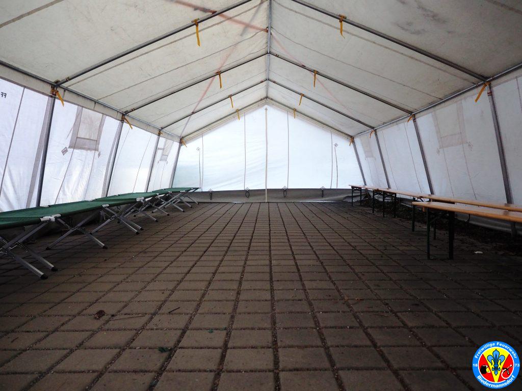 Im Sinne des Allgemeinwohls wurde dem Ersuchen entsprochen und ein Teil der eingerichteten technischen Gruppe alarmiert um ein Feuerwehrzelt aufzustellen.