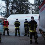 Wie auf den Fotos ersichtlich, tragen die Kameradinnen und Kameraden allesamt eine Atemschutzmaske. Dies ist ein Teil der weitreichenden Maßnahmen die getroffen wurden um eine Infektion der Einsatzkräfte, allen voran durch die eigenen Mitglieder, zu verhindern. Das Tragen der Atemschutzmasken ist erforderlich, weil im Feuerwehrfahrzeug wie auch beim Einsatz bei diversen Tätigkeiten nicht immer der erforderliche Sicherheitsabstand eingehalten werden kann.