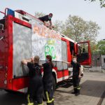 Gemeinsam mit Vertretern der Gemeinde, Mitarbeitern des Wirtschaftshofs, Vereinen und Privatpersonen schlossen wir uns mit dem TLF-A einem Autokonvoi an, welcher bei „Boni“ vorbei fuhr und mit Hupe, Horn und Blaulicht gehörig für Aufmerksamkeit sorgte.