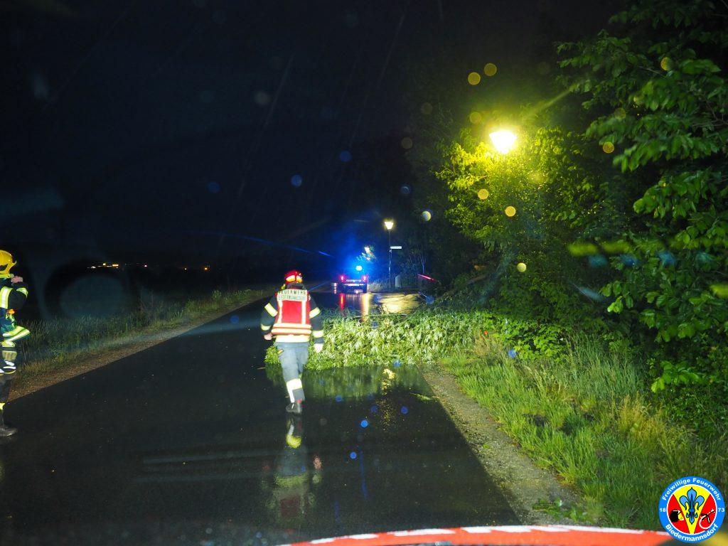 Der über Biedermannsdorf fegende Sturm forderte neuerlich die Einsatzkräfte. Um 20:51 Uhr wurden die ehrenamtlichen Mitglieder zu einem Sturmschaden am Friedhofsweg alarmiert. Kurz danach ging es Schlag auf Schlag.