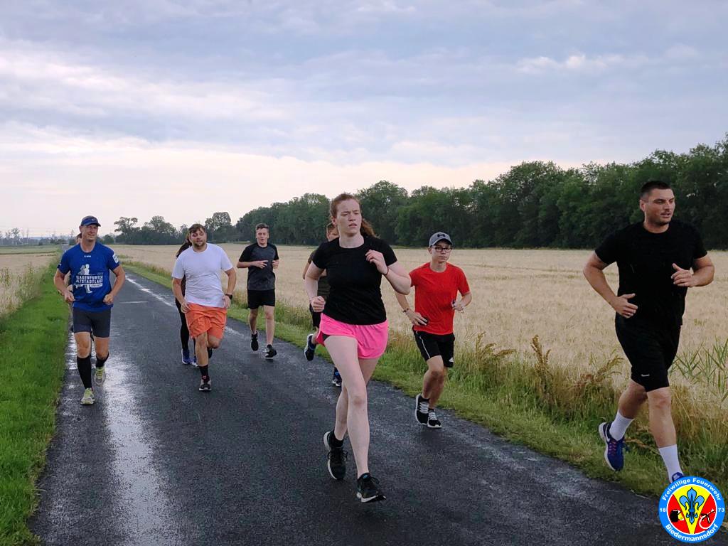 Neuerlich trafen sich die Kameradinnen und Kameraden vor der Gruppenübung um gemeinsam eine fünf Kilometerrunde zu laufen und im Anschluss „Feuerwehr Cross-Fit“ zu tätigen.