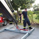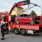 Am Übungsdienstag wurde vorerst die 1. Gruppe bezüglich der verschiedenen Möglichkeiten und Anwendungstechniken der PKW Bergung mittels Ladekran geschult.