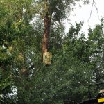 Der Auffangbehälter des Saugers wurde in weiterer Folge neben das Nest gehängt und dieser geöffnet. So ist es möglich dass die Hornissen ihr Nest wiederum bevölkern. Rund 24 Stunden später (gestern Abend) wurde der leere Auffangbehälter wieder abgeholt, um den Sauger einsatzbereit zu haben. Im Zuge der Abholung wurde auch das Nest kontrolliert und festgestellt dass die Hornissen das Nest wiederum bevölkern und so darf berichtet werden, dass die erste Umsiedlung der Hornissen geglückt ist.