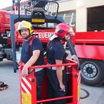 Intensiv geübt wurden diverse Sicherungsarbeiten, das Aussteigen aus dem Arbeitskorb auf Dächern und die Kommunikation zwischen der Korbmannschaft und dem Kranführer.