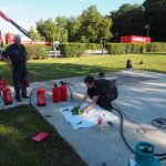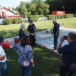 Im Gegenzug zu der Spende, wurden die Mitglieder der LIONS eingeladen um den richtigen Umgang mit einem Feuerlöscher zu erlernen und um ihnen das neu angeschaffte Fahrzeug zu präsentiert.
