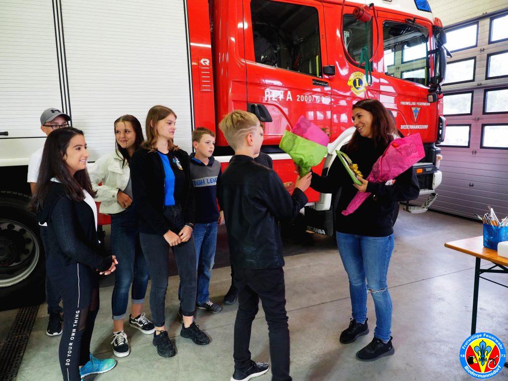Von der neu gewählten Gruppenkommandantin der Jugend: JFM Anna-Maria Hessler, wurden im Namen aller, Steffi Geschenke und Blumen überreicht.