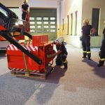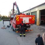 Wie schon die erste Gruppe, übte auch die zweite Gruppe mit Kran und Arbeitskorb, um Arbeiten in luftigen Höhen zu erledigen, losen Verputz, Dachziegel zu entfernen und vieles mehr.